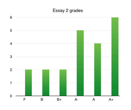 - Oct.30: Essay 2 grades have been emailed out. Here is the grade distribution for Essay 2.